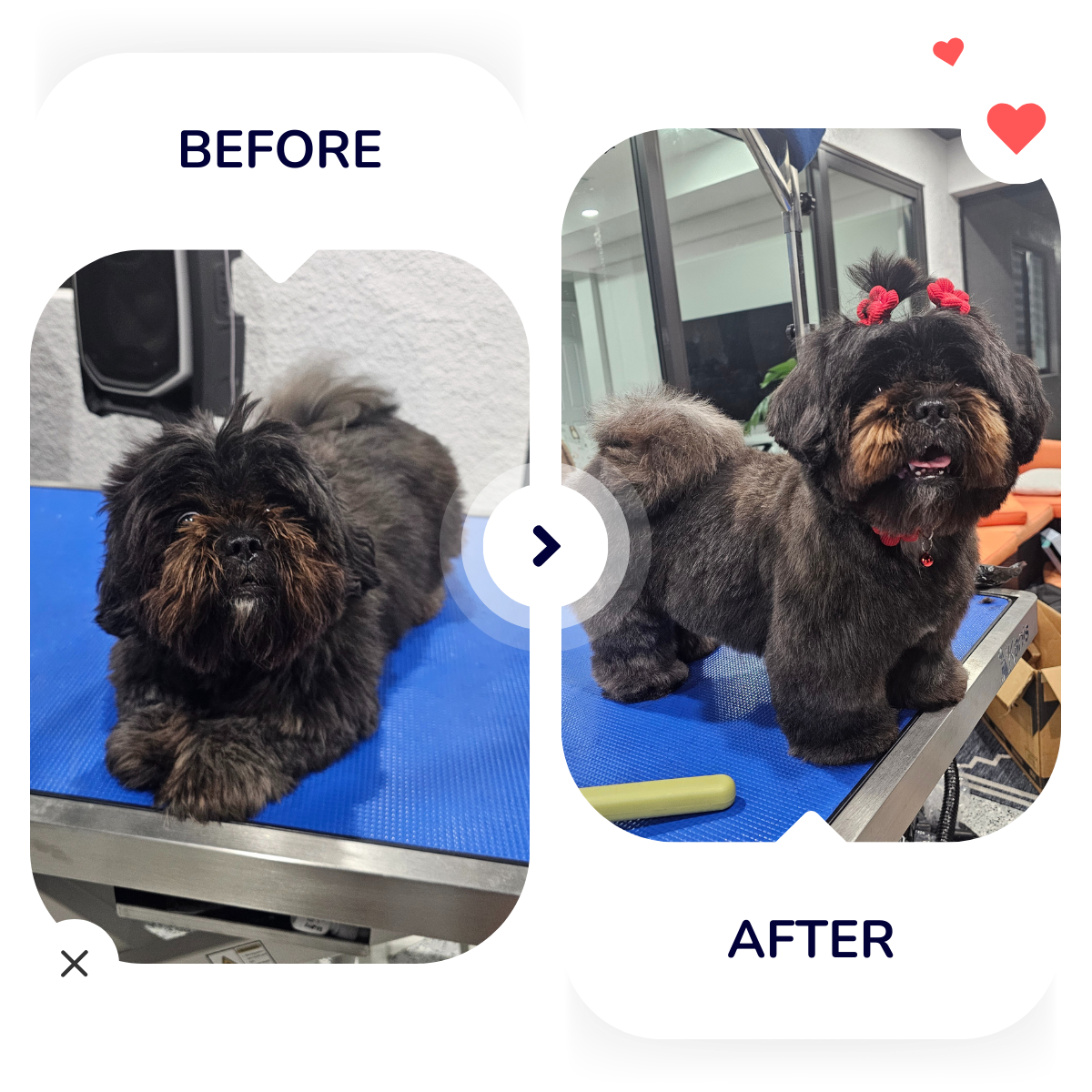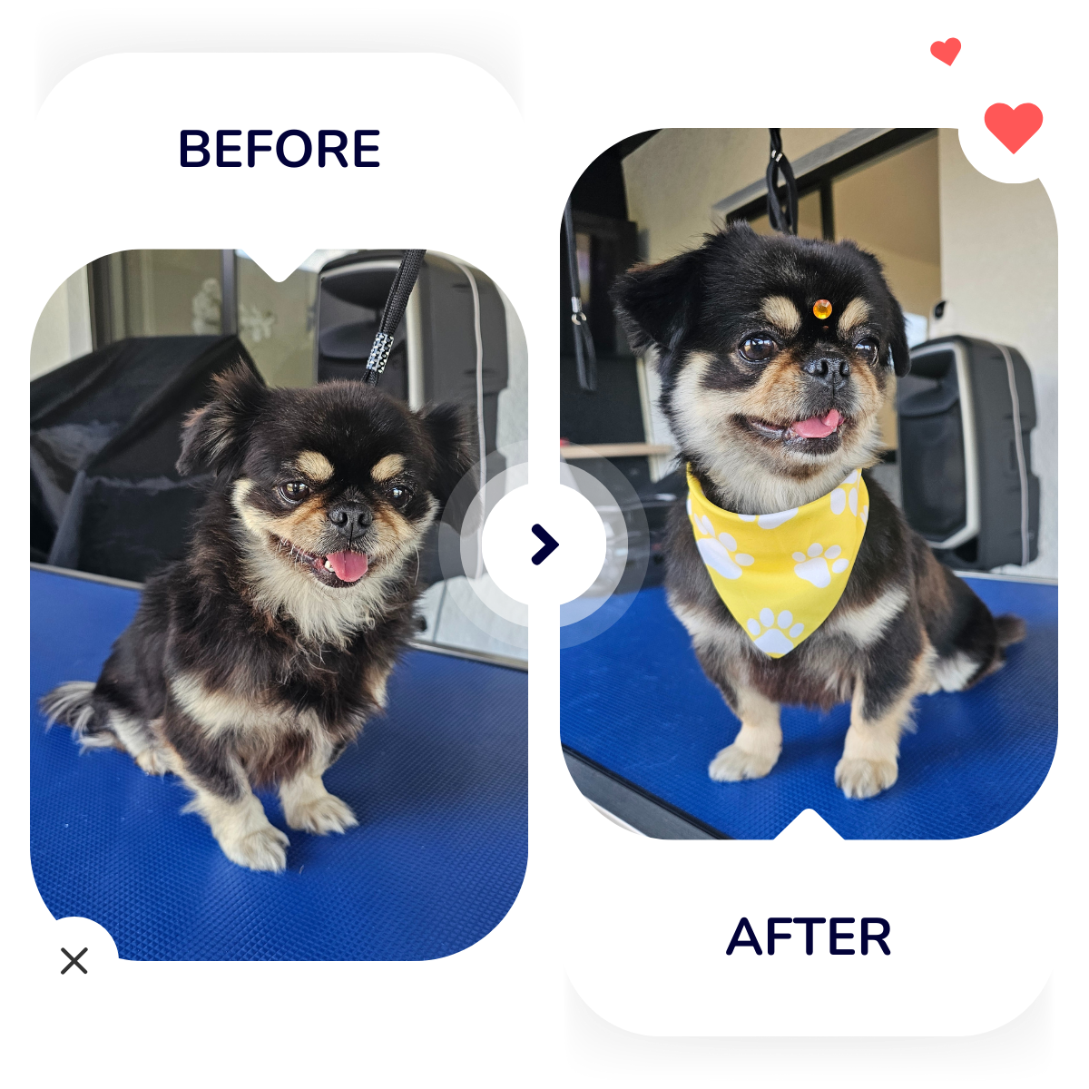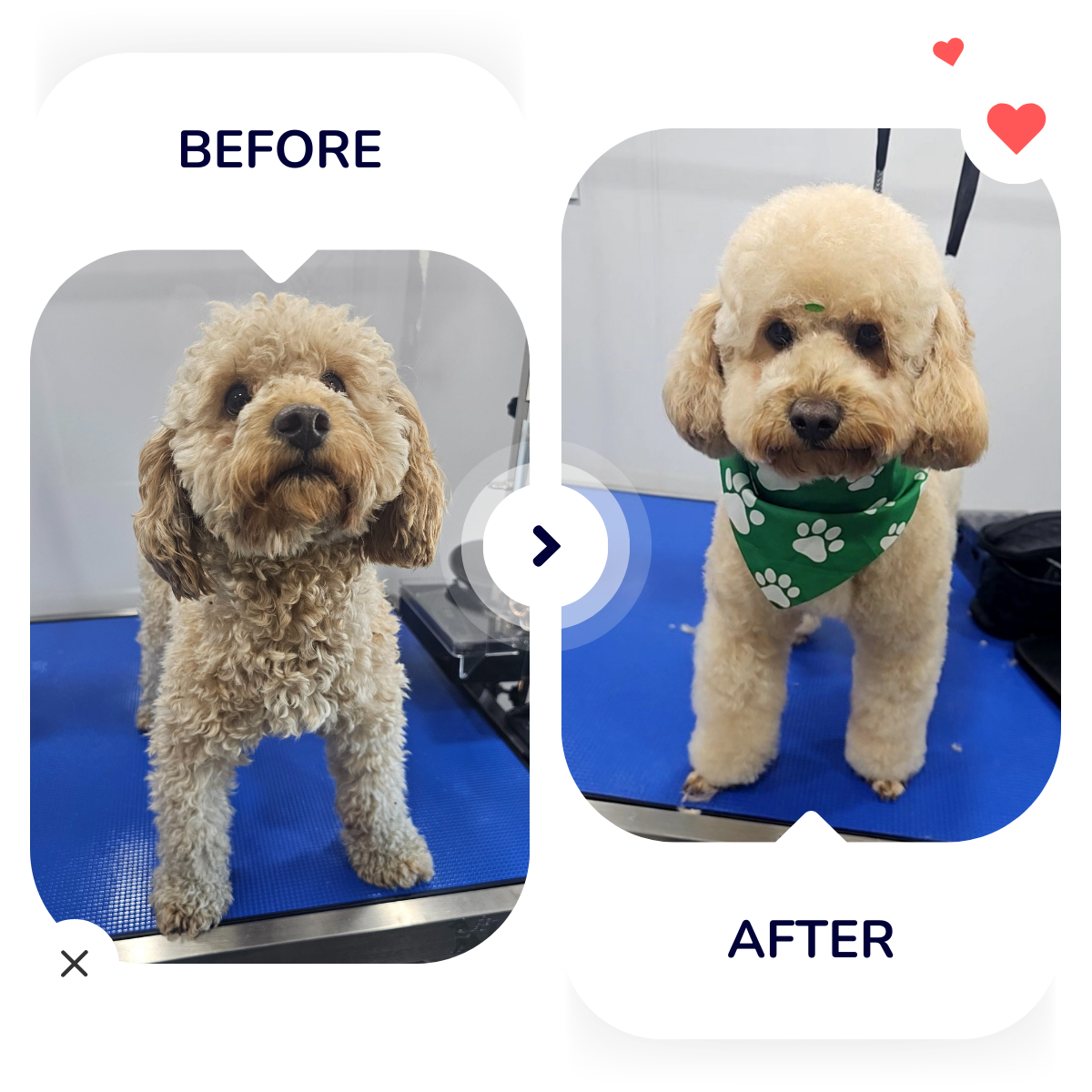 Service prices may vary depending on your dog’s breed and the specific haircut or style requested. If any price adjustments are needed, you will always be informed and asked for approval before the grooming session begins.
